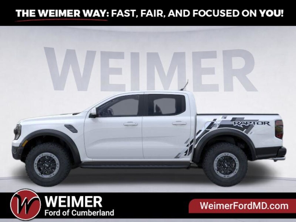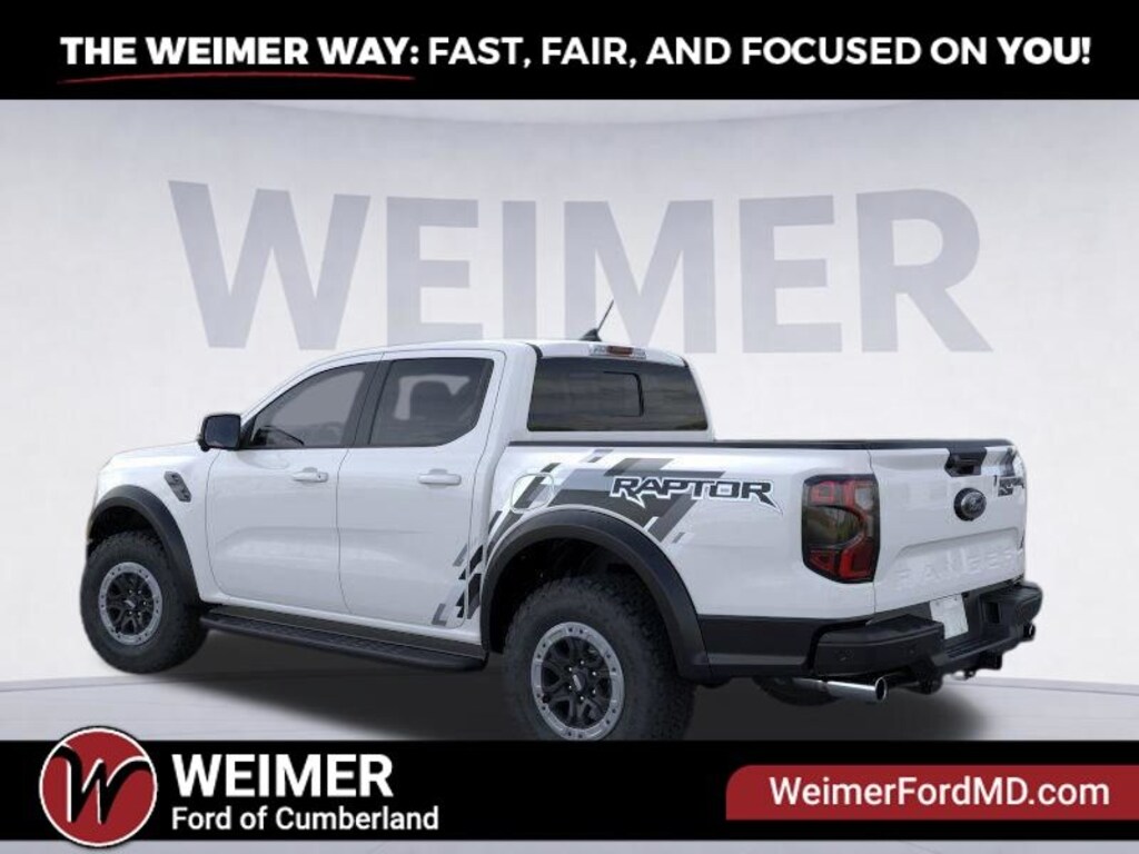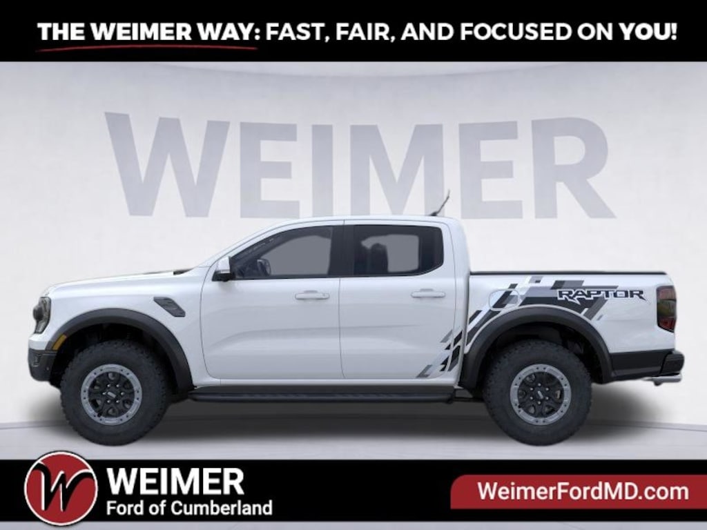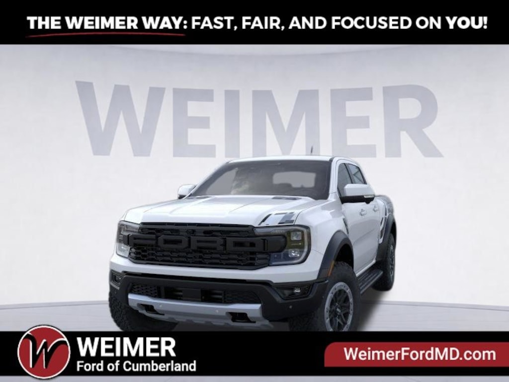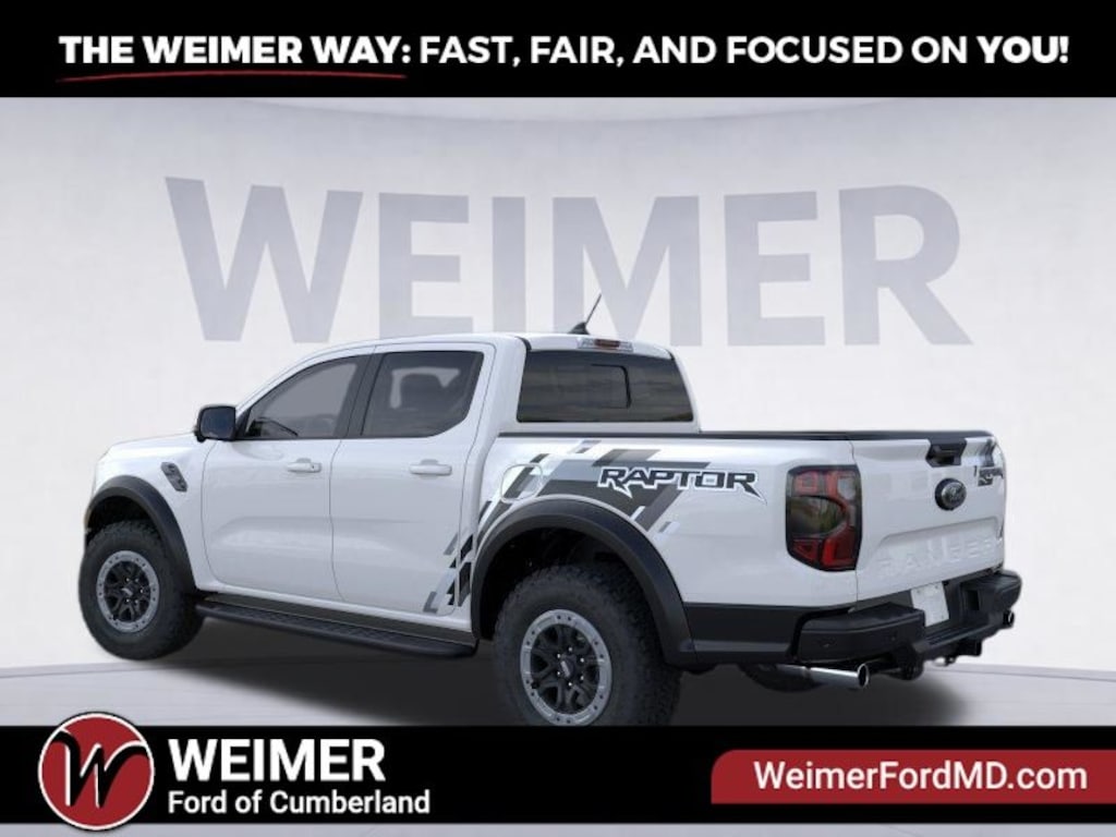Oxford White 2025 Ford Ranger Raptor 4WD 10-Speed Automatic 3.0L EcoBoost V6 4WD, Equipment Group 800A Standard, Front dual zone A/C, Heated front seats, Memory seat, Navigation system: Connected Navigation, Power driver seat, Radio: B&O Sound System by Bang & Olufsen, SiriusXM Satellite Radio, SYNC 4A, Tough Bed Spray-In Bedliner.